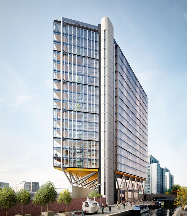 Designed by Grimshaw Architects, the scheme cantilevers above the LU station concourse, integrating a prominent new canal-side entrance to the station. The project is to deliver a best-in-class workplace environment with exemplary sustainability aspirations, targeting BREEAM ‘Outstanding’, EPC A, 5.5* NABERS, WiredScore Platinum Enabled, and WELL Platinum, while aligning with Helical’s Circular Economy principles to achieve net zero carbon in construction and operation.